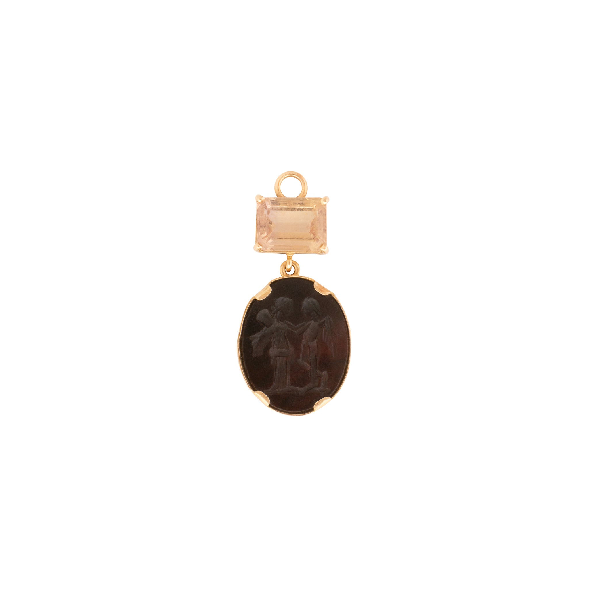 Versatile Antique Intaglio and yellow Ametrine in 18k gold. Can be worn as a single earring, or attached to our link necklace or link bracelet. Charm link sold separately, needed for attaching the charm to our link necklace or link bracelet. Single Huggie sold separately needed for wearing the charm as a single earring.
