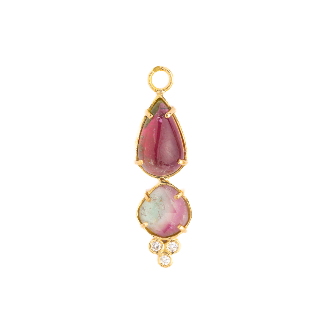 One of a kind mixed Tourmaline & Diamond Charm in 18k gold. Can be worn as a single earring, or attached to our link necklace or link bracelet. Charm link sold separately, needed for attaching the charm to our link necklace or link bracelet. Single Huggie sold separately needed for wearing the...
