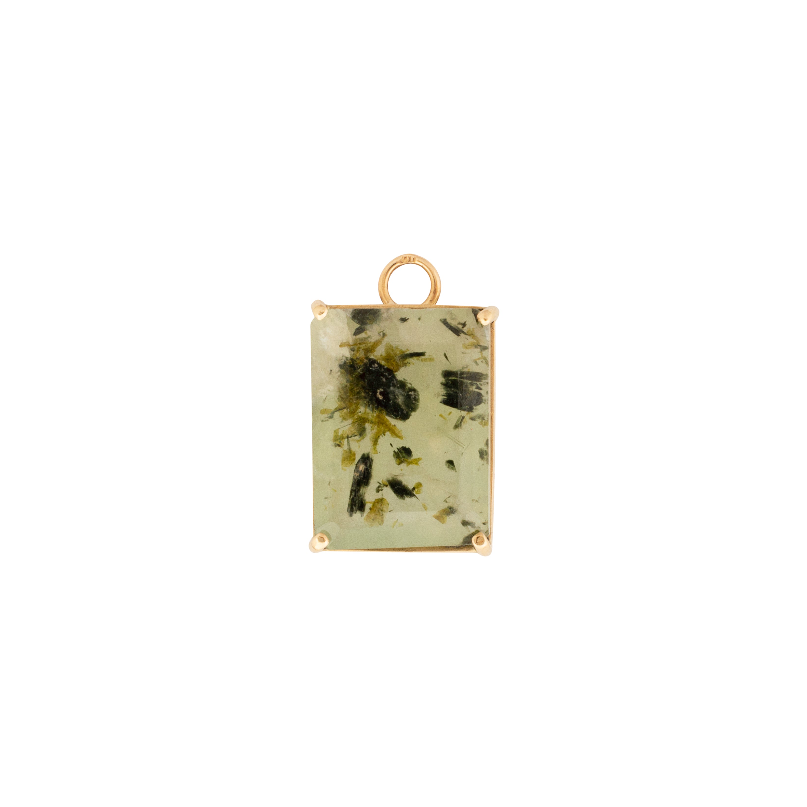Emerald cut Rutilated Green Quartz  single charm in 18k gold. Can be worn as a single earring, or attached to our link necklace or link bracelet. Charm link sold separately, needed for attaching the charm to our link necklace or link bracelet. Single Huggie sold separately needed for wearing the charm as...