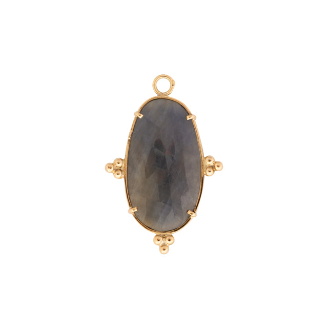 Versatile Blue Grey rose cut Sapphire beaded charm in 18k gold. Can be worn as a single earring, or attached to our link necklace or link bracelet. Charm link sold separately, needed for attaching the charm to our link necklace or link bracelet. Single Huggie sold separately needed for wearing the charm as a single earring.