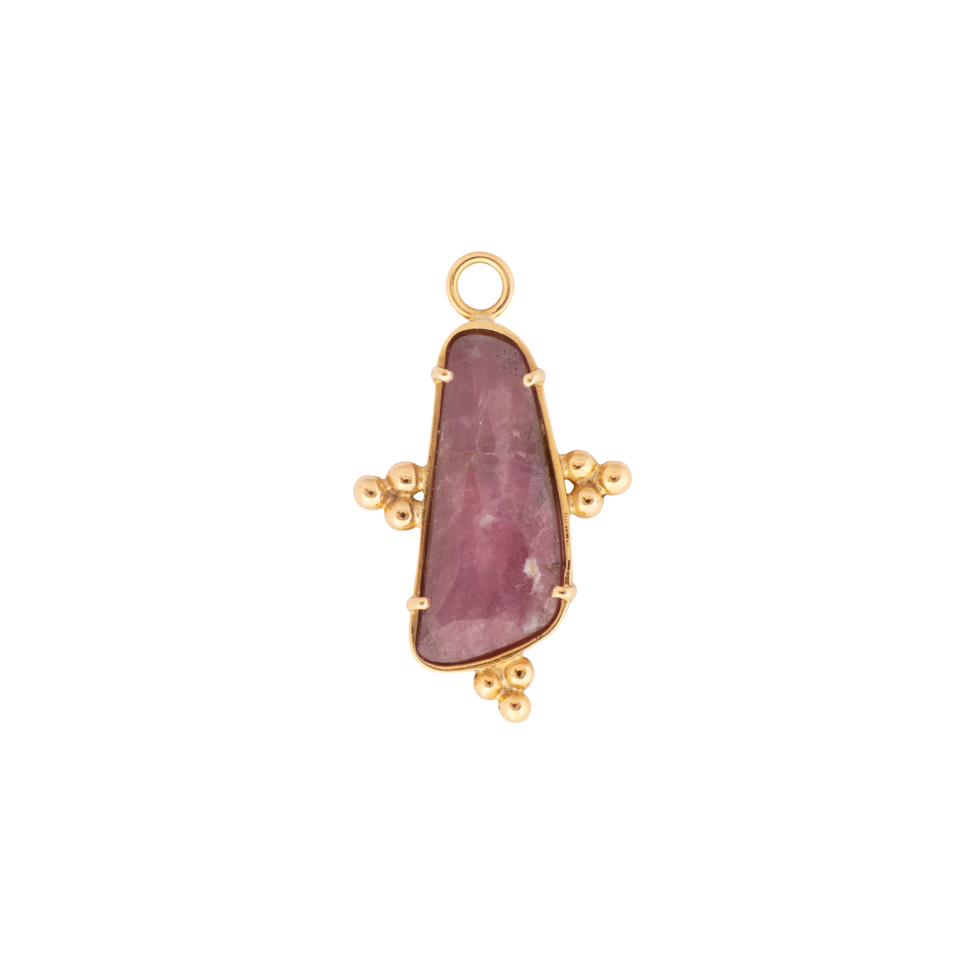 Versatile blush irregular rose cut slice sapphire charm in 18k gold. Can be worn as a single earring, or attached to our link necklace or link bracelet. Charm link sold separately, needed for attaching the charm in our link necklace or link bracelet. Single Huggie sold separately needed for wearing the charm as a single earring.
